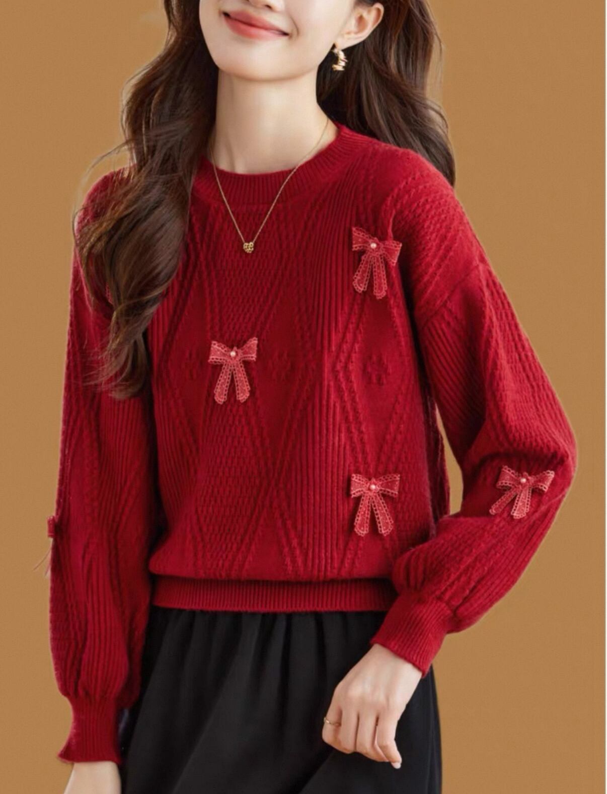**一段と素敵な印象へ!リボン付き 長袖カジュアルセーターが新登場!**