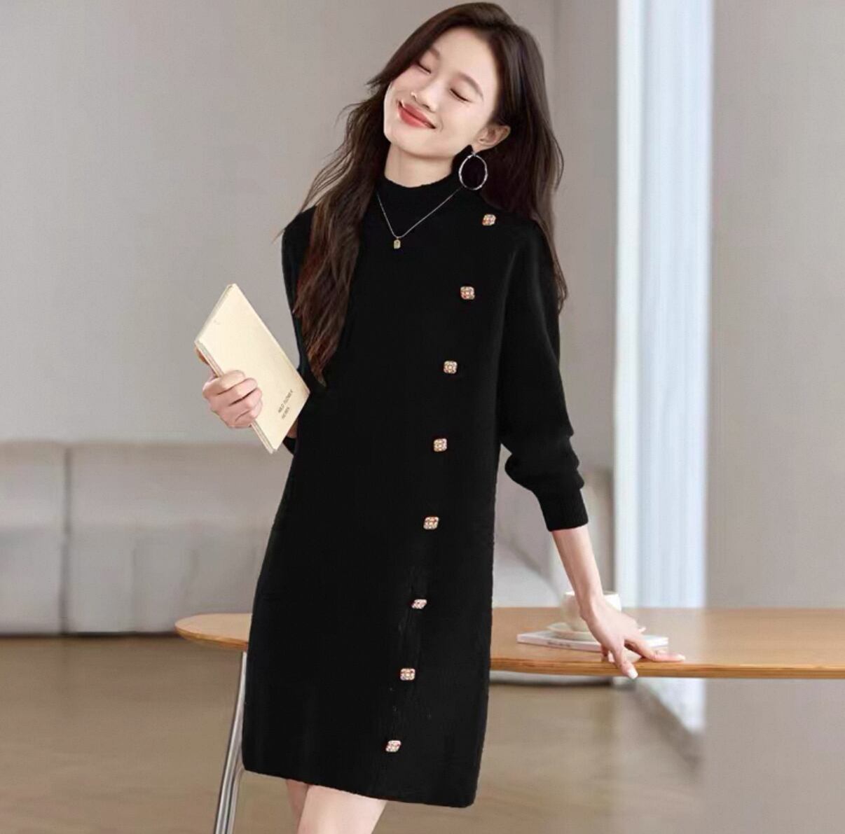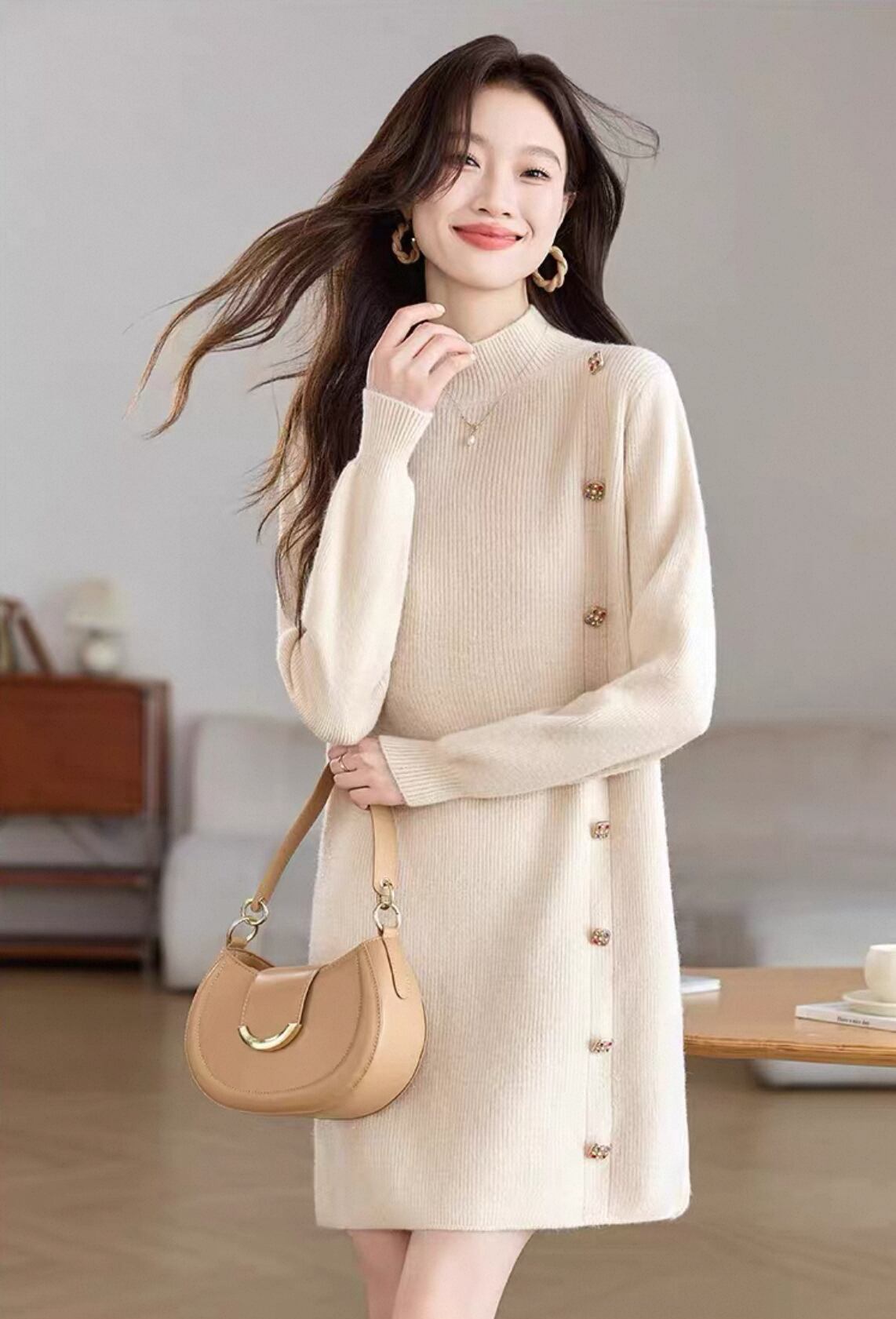 このニットワンピースは、スタイリッシュさと着心地の良さを兼ね備えた素敵なアイテムです!お尻をカバーするデザインが、あなたのシルエットを美しく見せ、デイリースタイルに自信をプラスします。