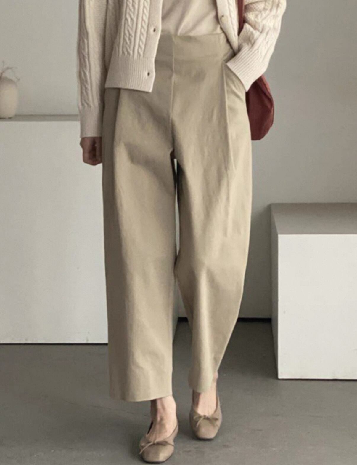 ハイウエスト スリムプリーツ ワイドレッグ カジュアルパンツ