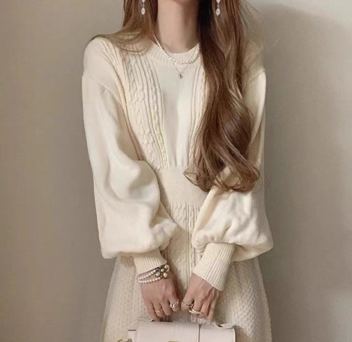 ・ふんわりとしたパフスリーブが魅力的な印象を与え、レトロなラウンドネックが着る人を引き立てます!全体的にゆったりとしたシルエットが動きやすさを提供し、ストレスフリーな着心地を実現します。デニムやブーツとの相性も抜群で、コーディネートの幅を広げる一着となっています。特別な日のワードローブにぜひ加えてみてはいかがでしょうか。