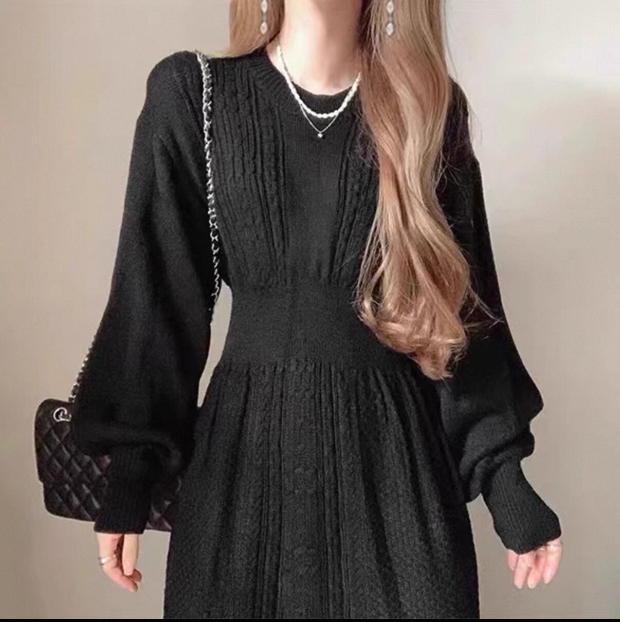 **華やかさと秋らしいスタイルを兼ね備えた一着!パフスリーブ レトロラウンドネック ワンピースが新登場!**