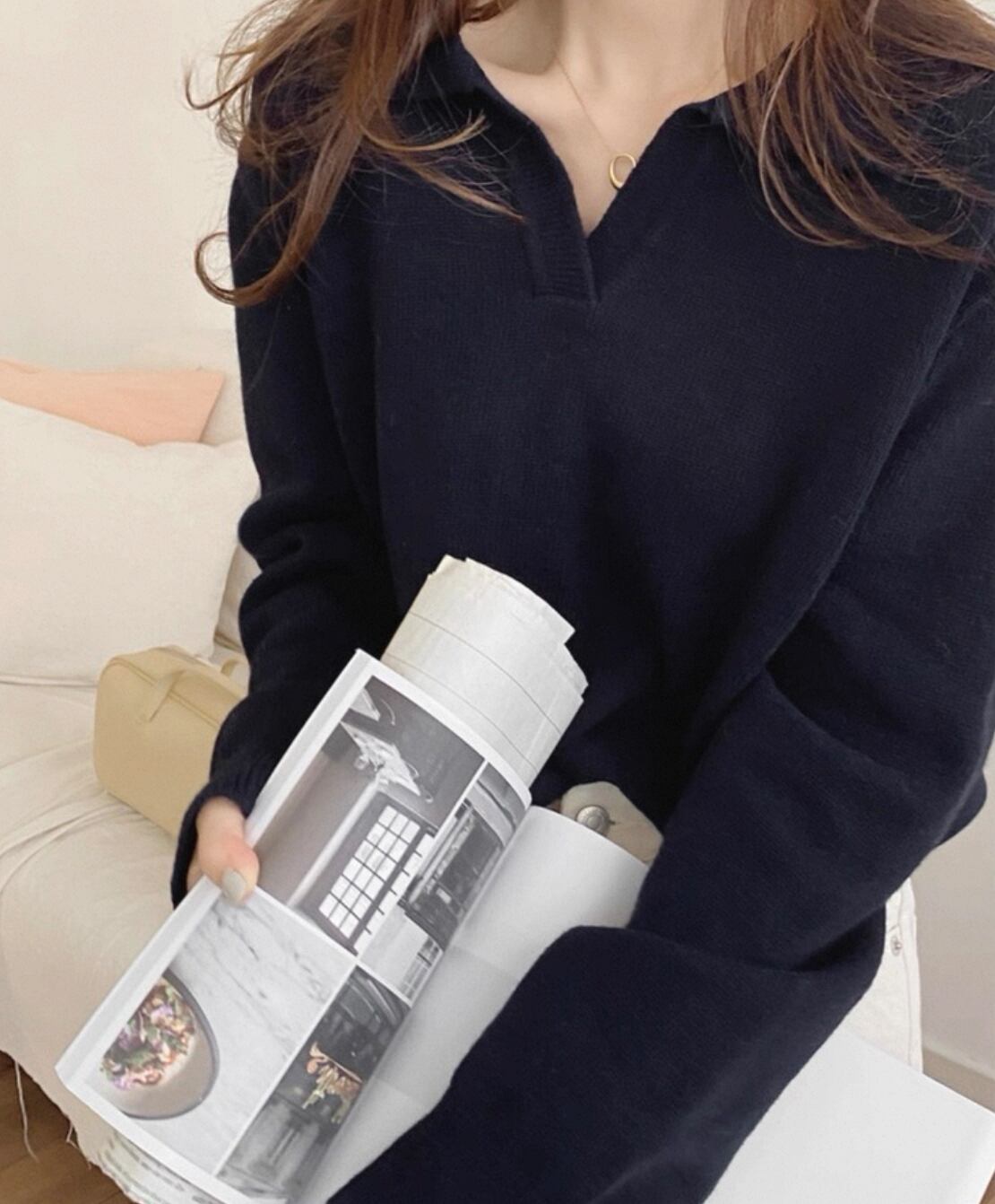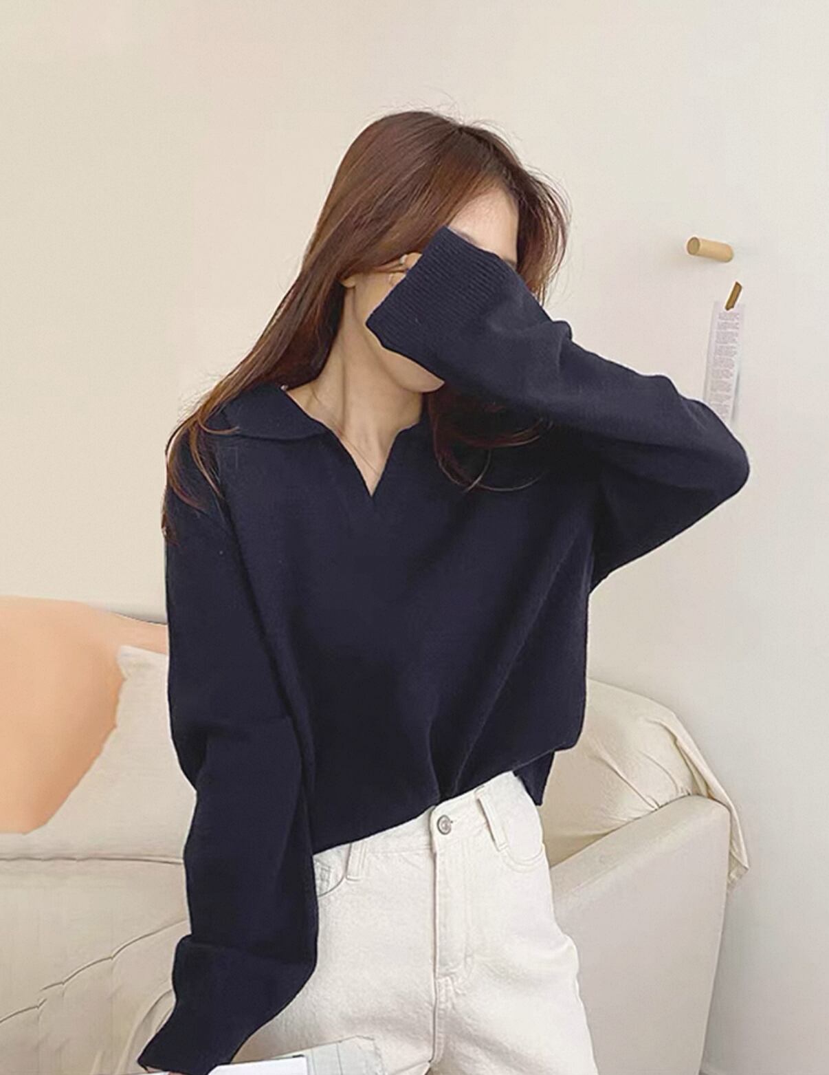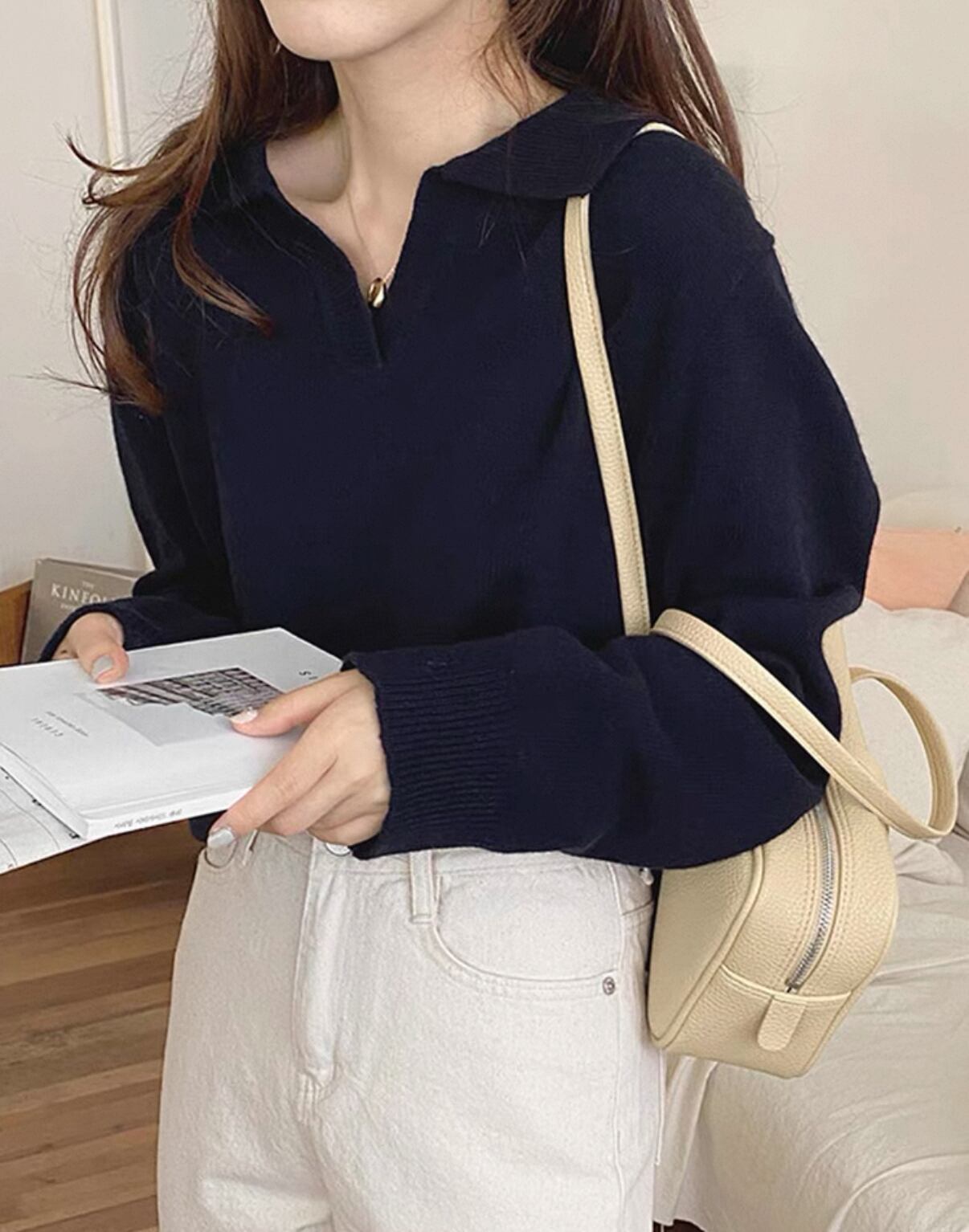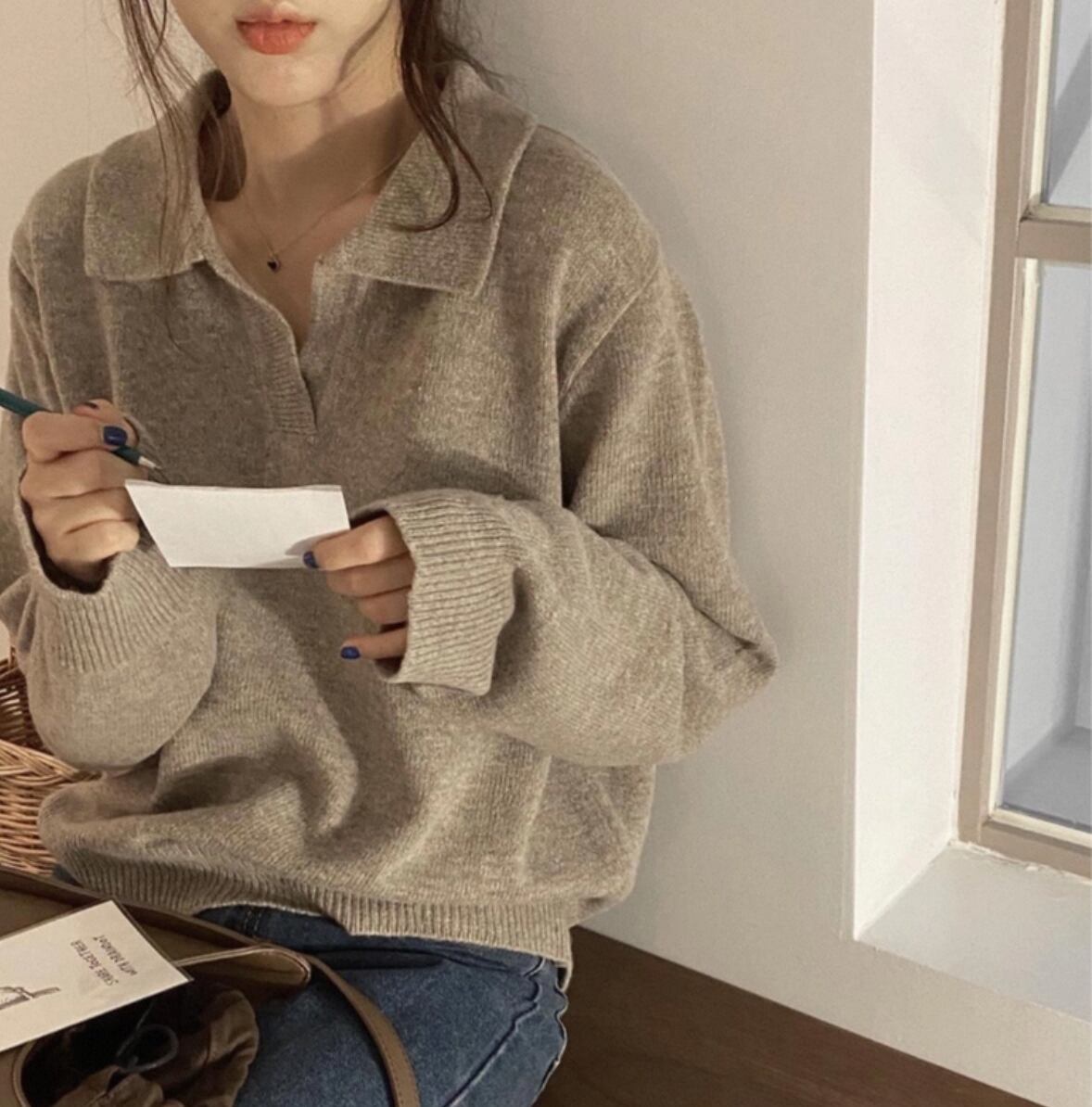 **上品さとカジュアルさを兼ね備えた一着!長袖無地ニットセーター 襟付きPOLOが新登場!**