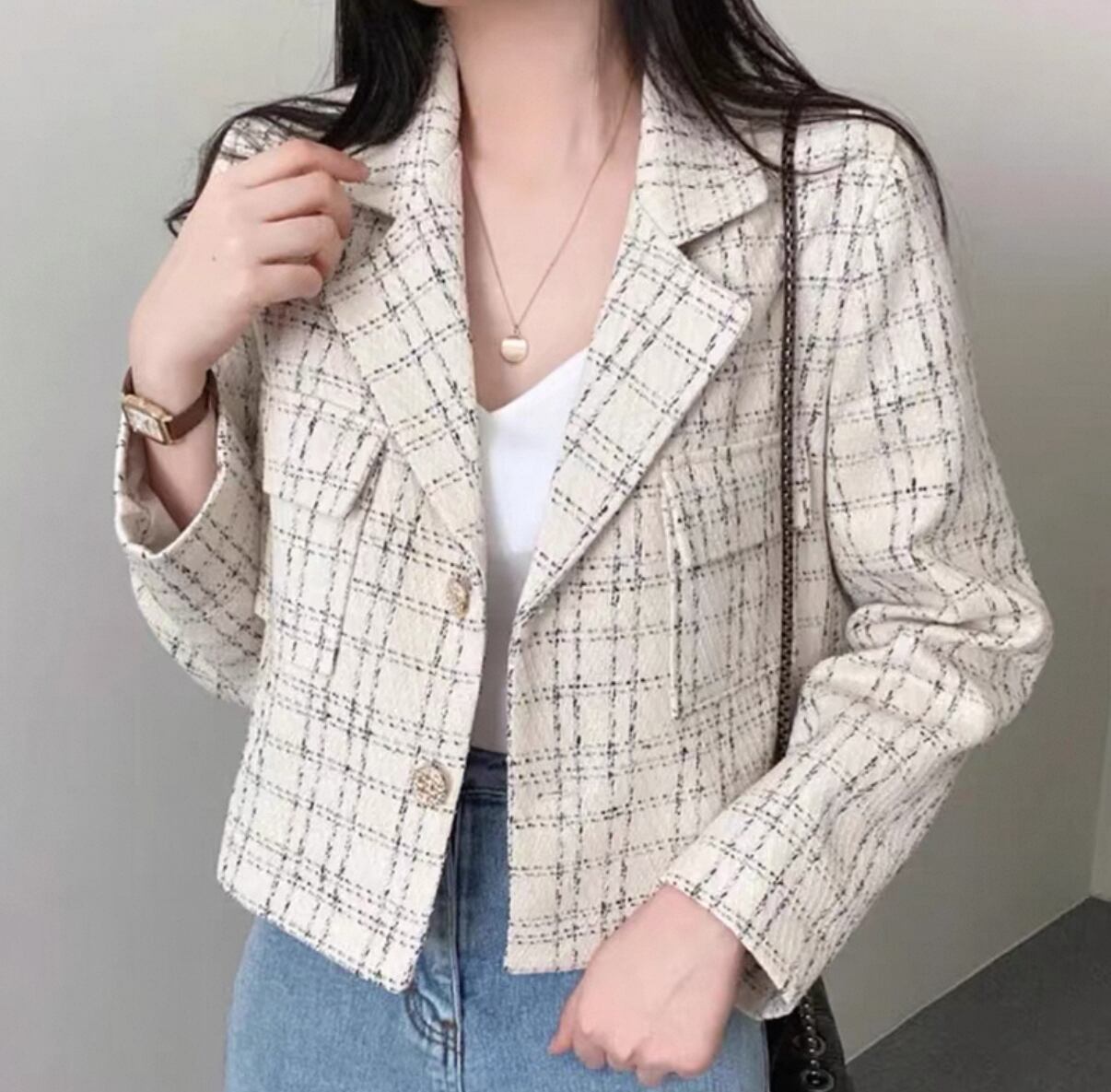 このチェック柄 ショートジャケット 二粒ボタンは、トレンドを押さえたデザインと高品質な素材が魅力のアイテムです!デイリーユースから特別なシーンまで幅広く活躍すること間違いなしです。