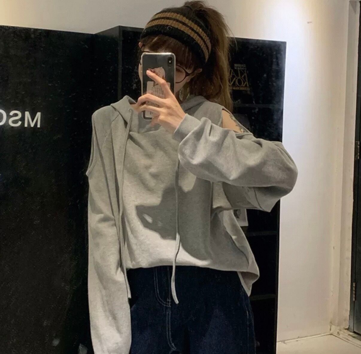 **トレンド感満載の一着!オフショルダー スウェット パーカー アウターが新登場!**