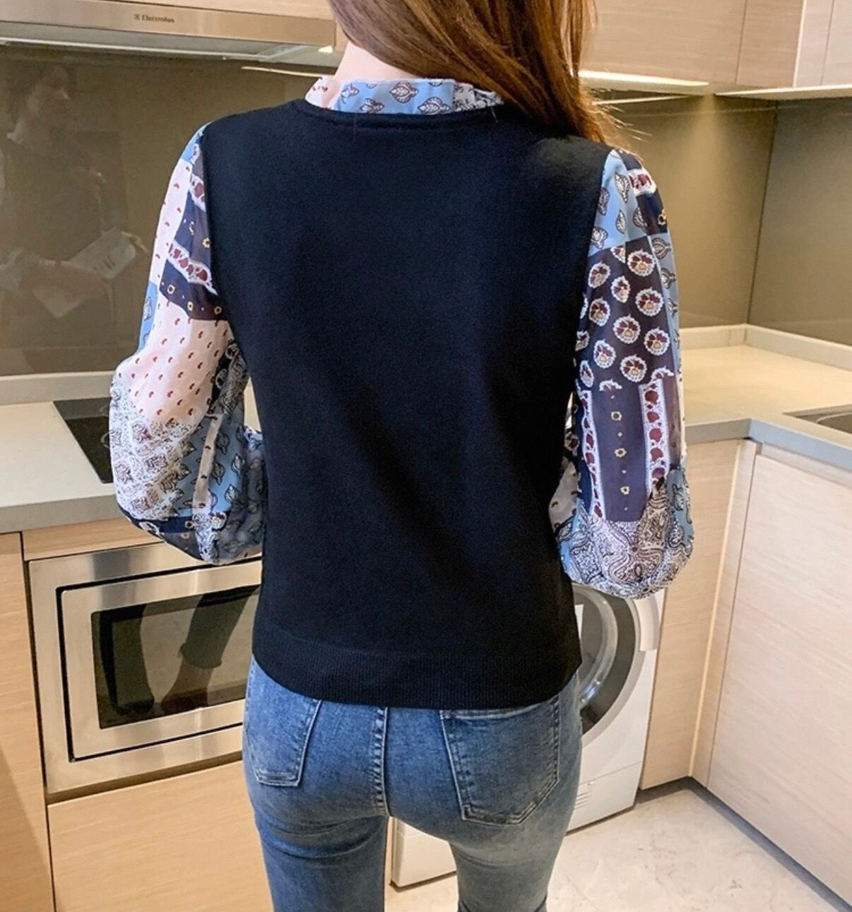 重ね着風 レトロ デザイン感 シフォンシャツ