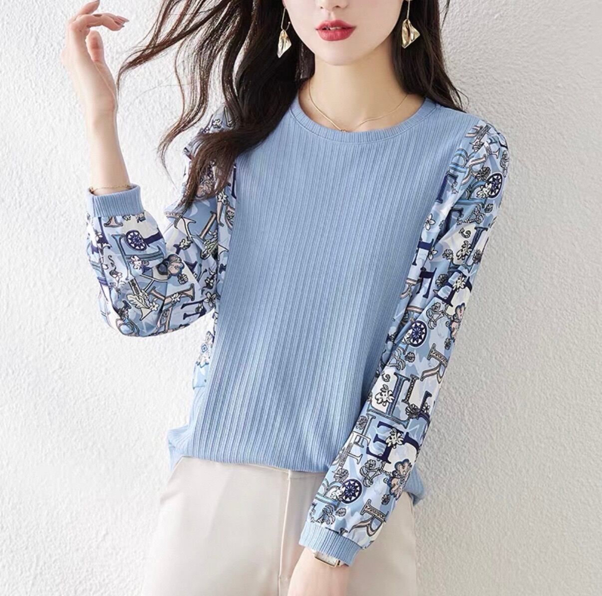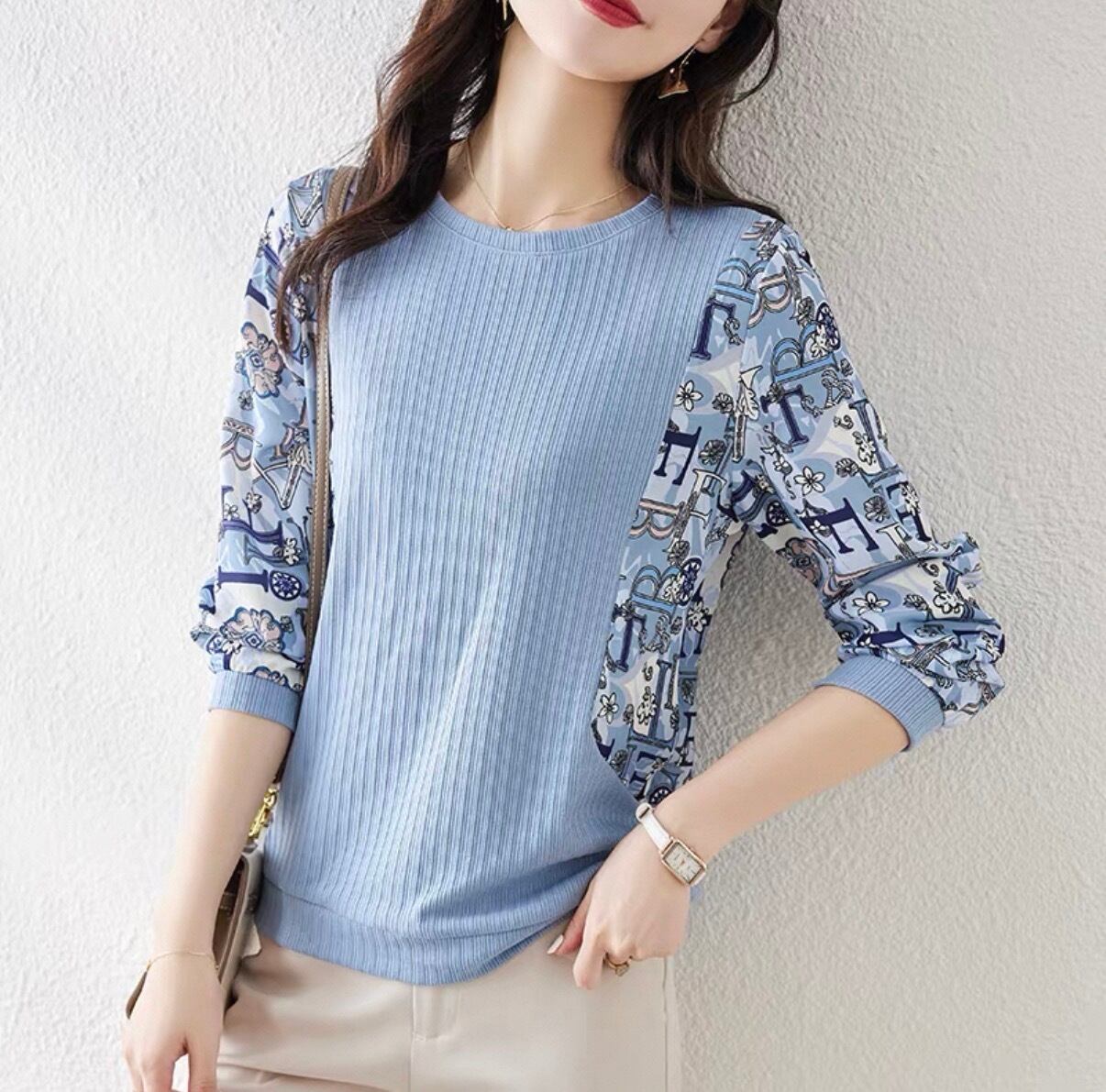 **普段使いにもピッタリな一着!ラウンドネック プリントシャツ カジュアルが新登場!**