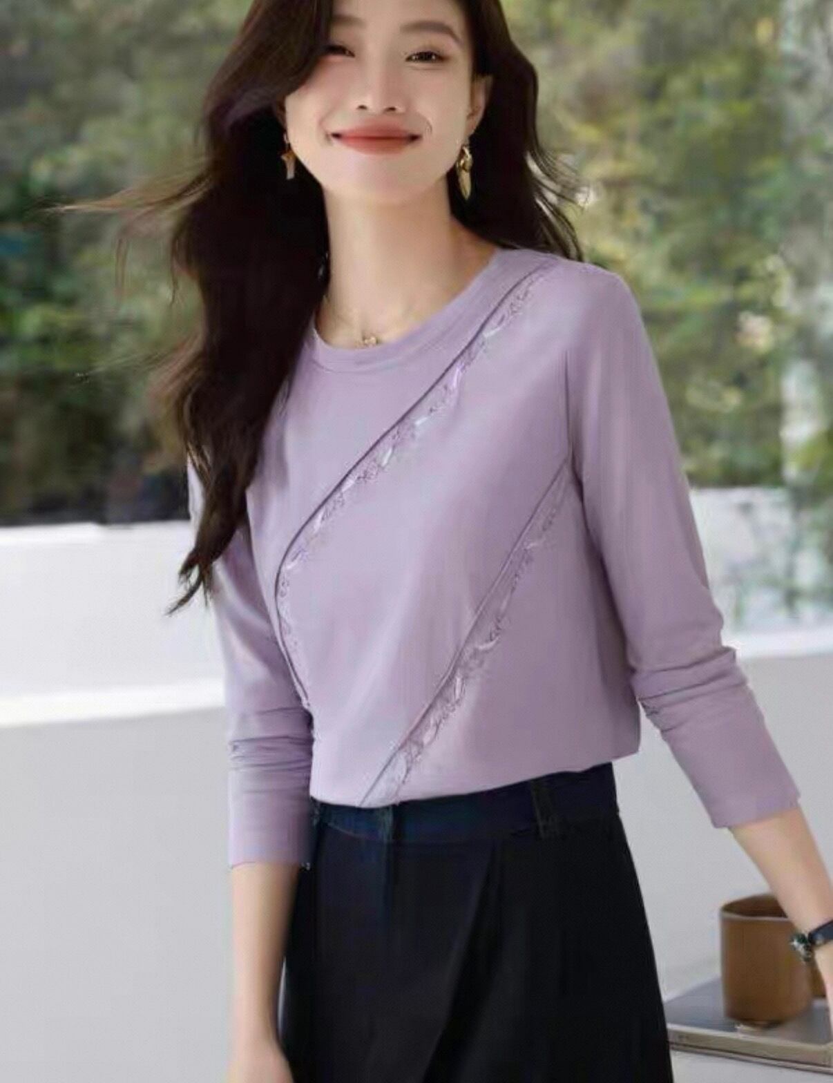 **おしゃれな重ね着に最適!刺繍 アンダーシャツ 長袖シャツ パープルが新登場!**