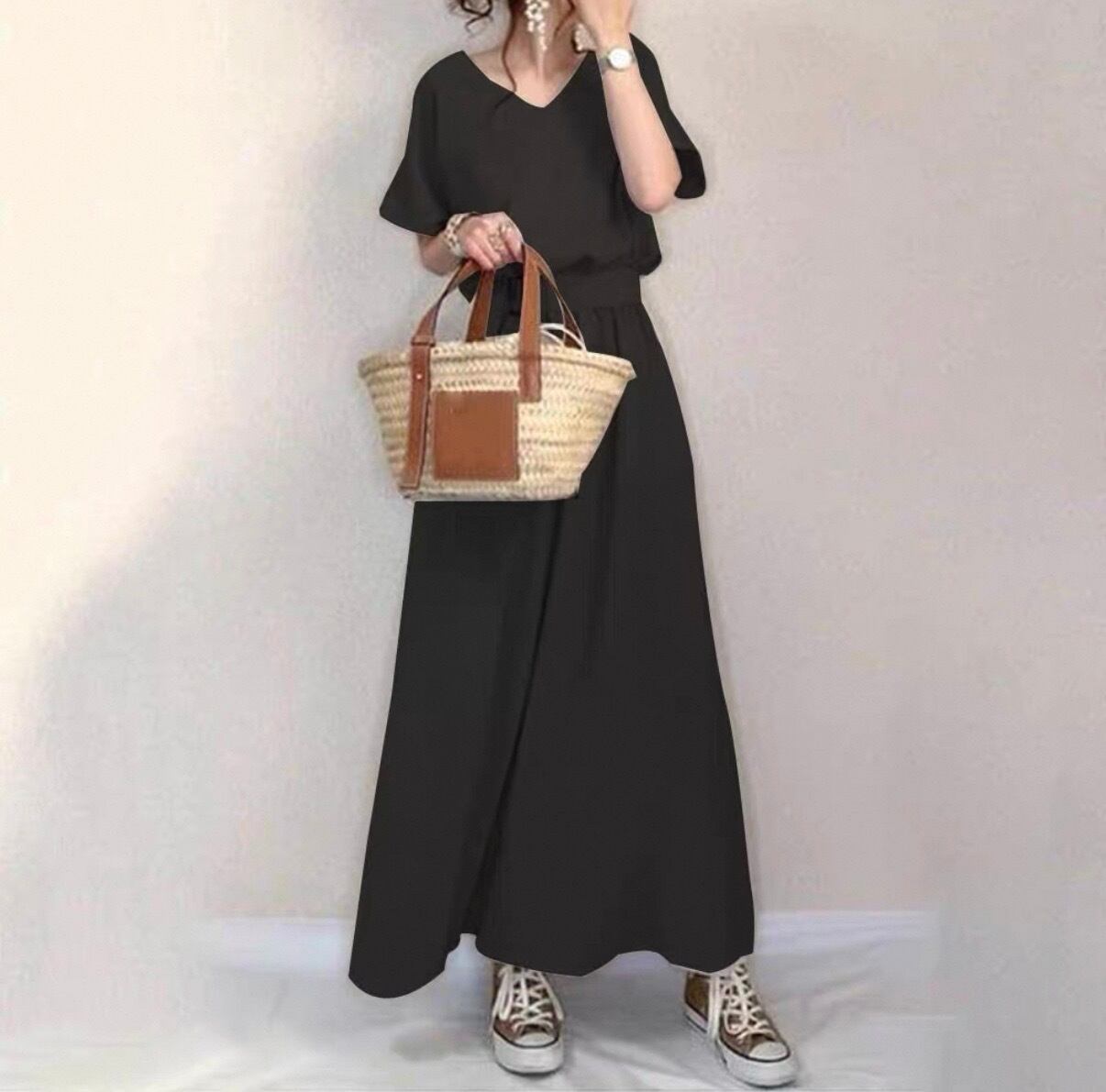 **洗練されたシルエットと魅力を引き出す!Vネック ハイウエスト ベルト ロングスカート ワンピースが新登場!**