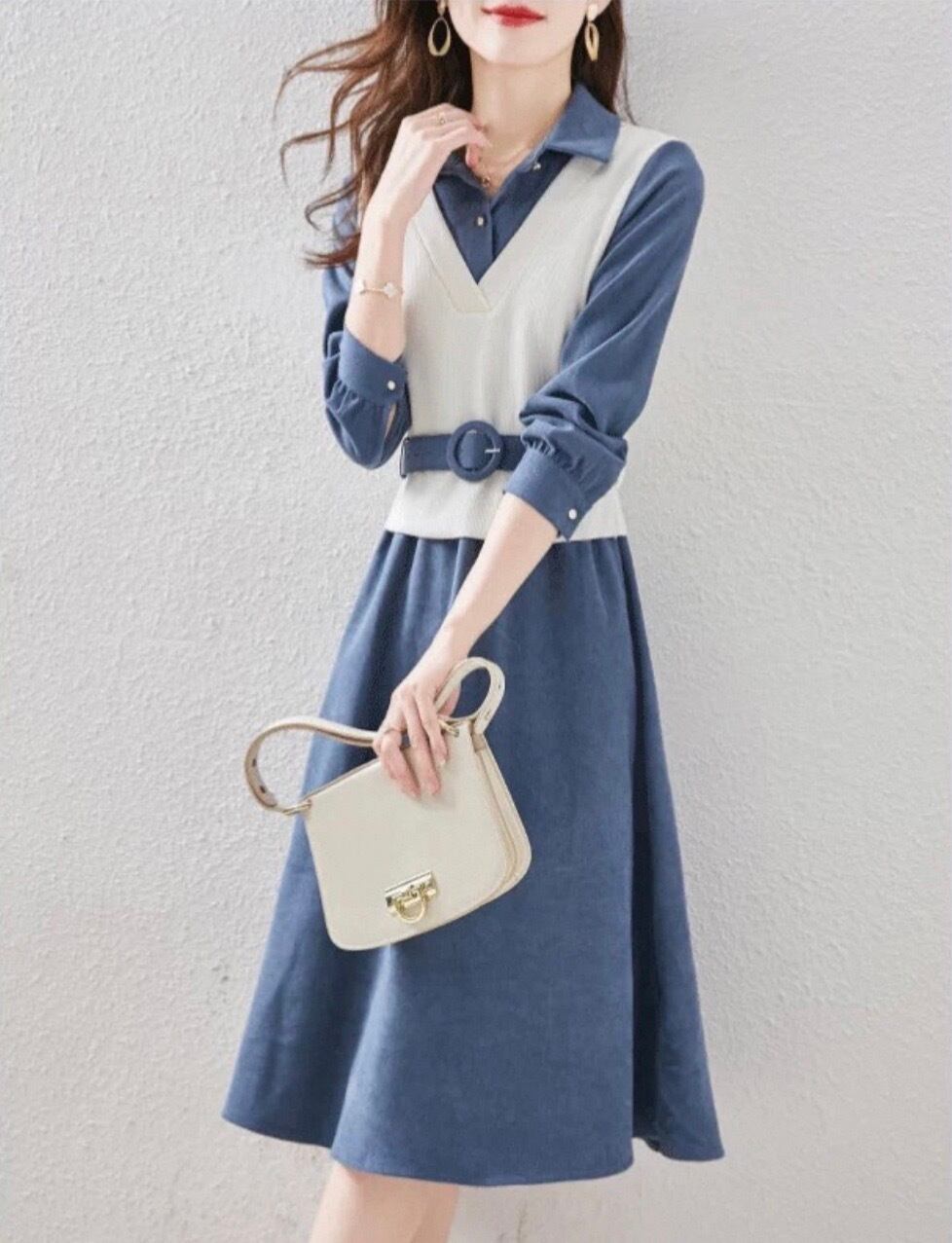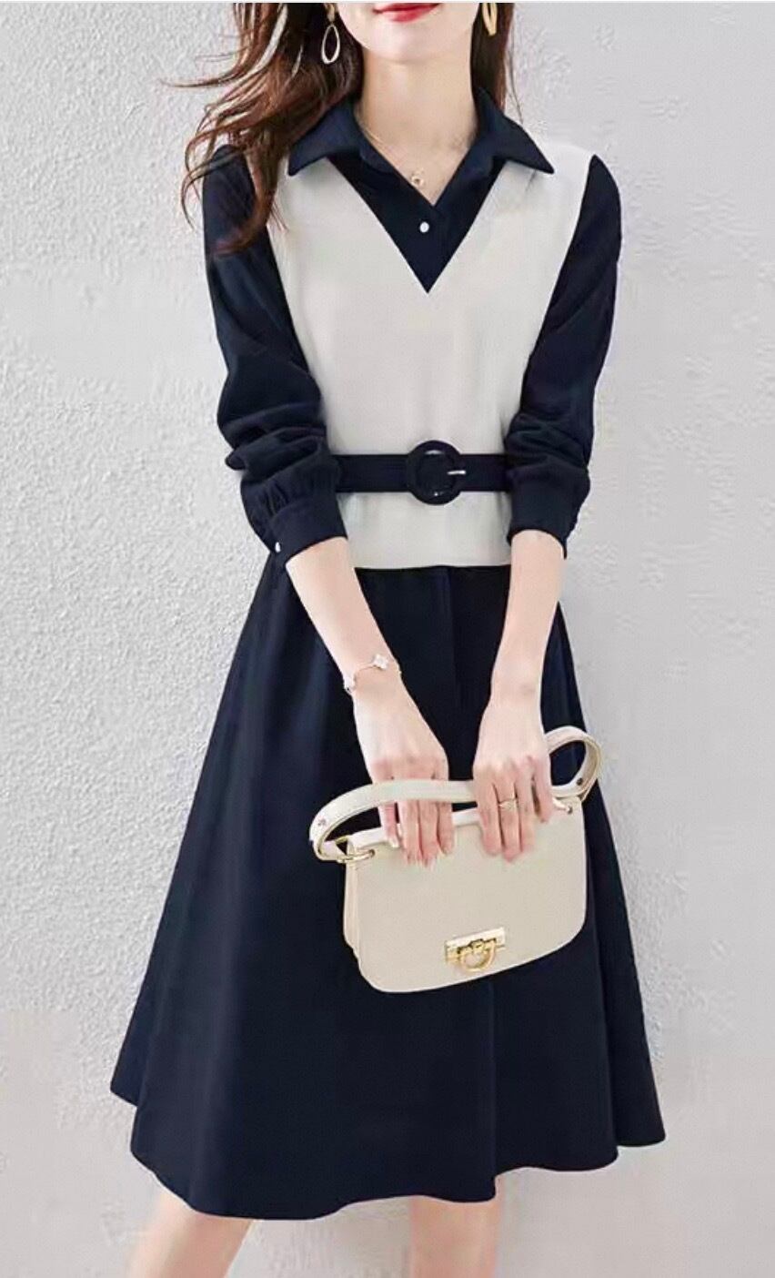 **重ね着風スタイルを楽しもう!ひざ丈スカートの長袖ワンピースが新登場!**